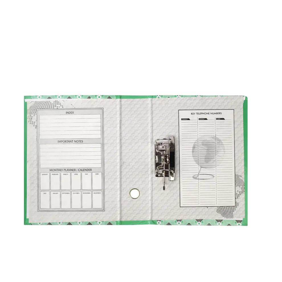 - Comes with an index and monthly planner printed on the front inner side and space to write down key telephone numbers on the back inner side of the file